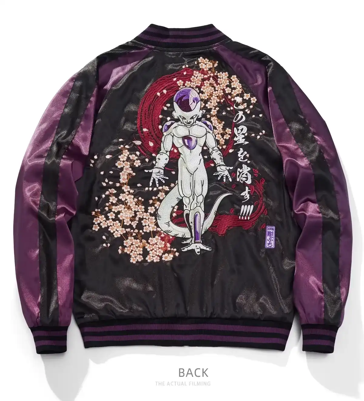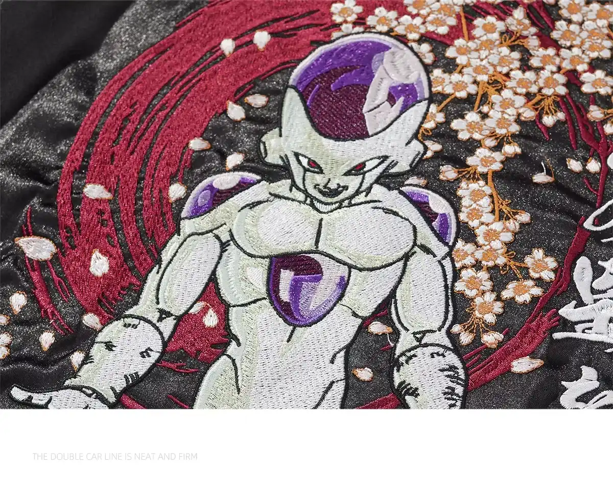 Pre-Order: Unisex Sukajan Frieza Jacket - Dragon Ball Z Satin Bomber (Full Embroidery) ๐งฅโจ